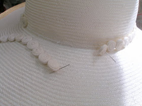 This type of trim was always made by hand and is just small strip straw rolled on it's edge and stitched into place, this type of straw is pretty hard to find these days and I have had this piece of trim for I don't know how long I came across it at the bottom of a box while looking for trims for a couple of child's hats I made for the final day at the racing - two matching little sisters - they had adorable matching white lace Collette Dinnigan dresses.